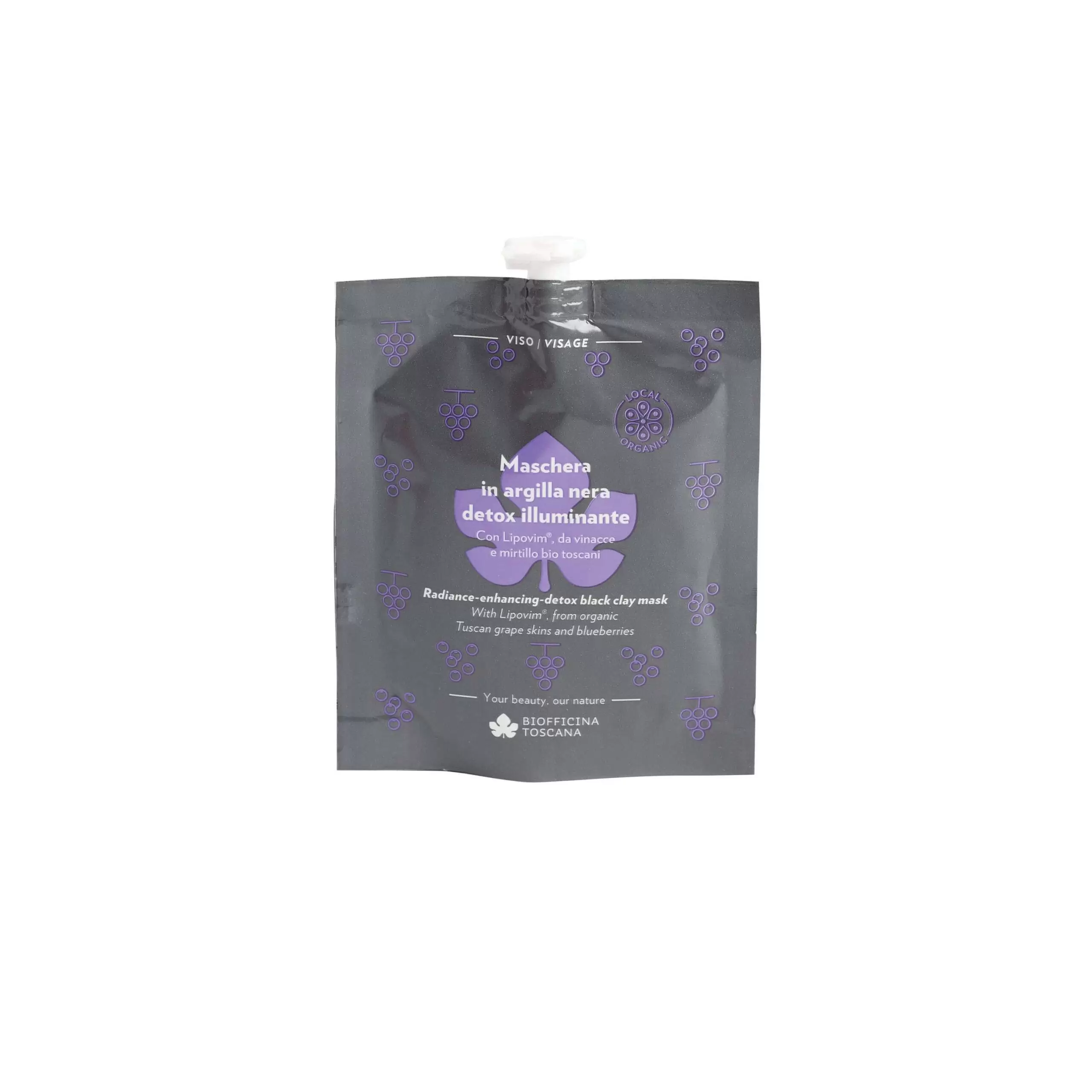 Valomoji veido kaukė su juoduoju moliu savo sudėtyje turi natūralių minkštinančių veikliųjų medžiagų, naudingų pavargusiai, papilkėjusiai ir brandžiai odai, nesukeldamos jokios dehidratacijos. Molis sugeria ir pašalina riebalų perteklių, prakaitą, nešvarumus, šlakus ir toksinus, nepaveikdamas odos drėgmės lygio. Mikroelementai (cinkas, magnis, selenas, varis ir manganas) giliai valo ir išlaiko sveiką išvaizdą. Rubiox®, patentuotas aktyvus ingredientas, pagamintas iš raudonųjų antioksidantų, stiprina, saugo. Formulė taip pat praturtinta ekologišku saulėgrąžų aliejumi, skvalenu, gautu iš alyvuogių aliejaus, ir drėgmę sulaikančiomis savybėmis, gautomis iš cukraus, saugo odą ir mažina drėgmės praradimą, tuo pačiu pagerindama odos gebėjimą pasisavinti svarbiausias maistines medžiagas.